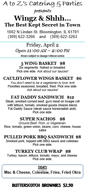 11:00 AM to 2:00 PM Friday, April 2, stop by for lunch!