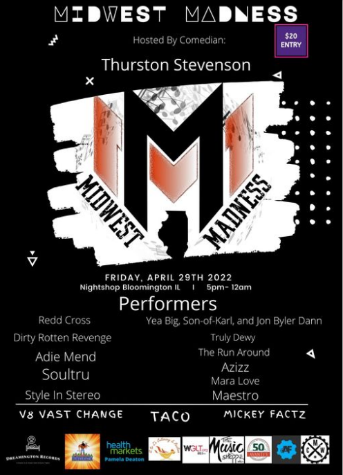 Join us Friday, April 29, at the Midwest Madness Music Festival! Come to Nightshop at 517 N Main St in Bloomington, starting at 5:00 PM.