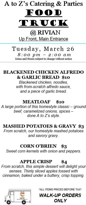 Folks – we’ve back at Rivian’s front entrance Tuesday evening 3/26.