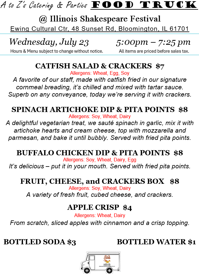 We’re at Shakespeare Festival through Friday night (and again next week Tues-Fri). Friday’s food truck is a special one – we’re collaborating with Flame@Bloom on a special Birria bowl. The A and the Z both love Flame@Bloom and are stoked to bring you a taste!