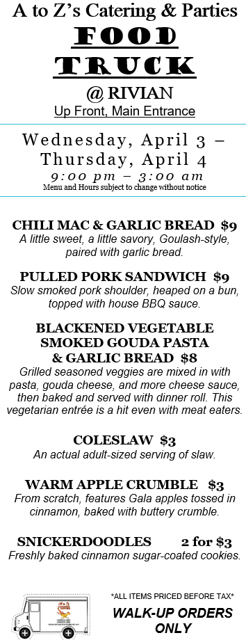 More dates and locations on the way! Menus will be posted a few days prior to each food truck outing.